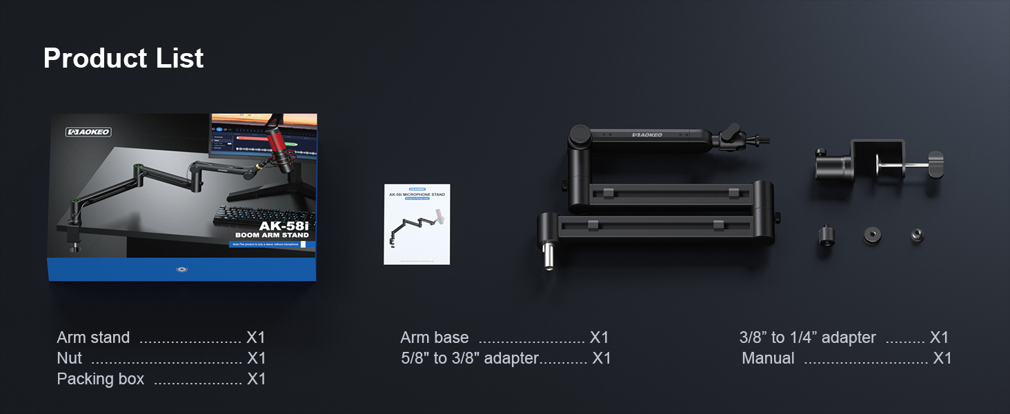 Tags: AK59, Low-profile Boom Arm, microphone arm, microphone stand